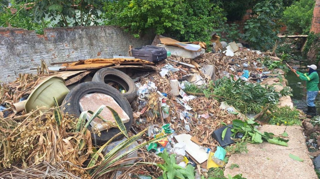 Várzea Grande Prefeitura realiza ação de desobstrução no Córrego da Manga e retira toneladas de lixo para ampliar vazão da água