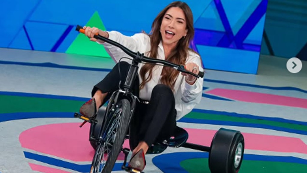 A apresentadora Patrícia Abravanel, arrancou gargalhadas da plateia de seu programa ao surgir andando de triciclo durante a programação. Ela postou um vídeo do momento