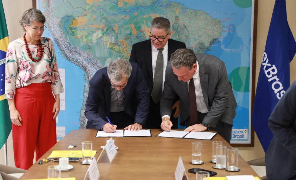 Nesta terça-feira (23), na sede da ApexBrasil, em Brasília, o ministro da Agricultura e Pecuária, Carlos Fávaro, participou da assinatura de Memorando de Entendimento (MoU)