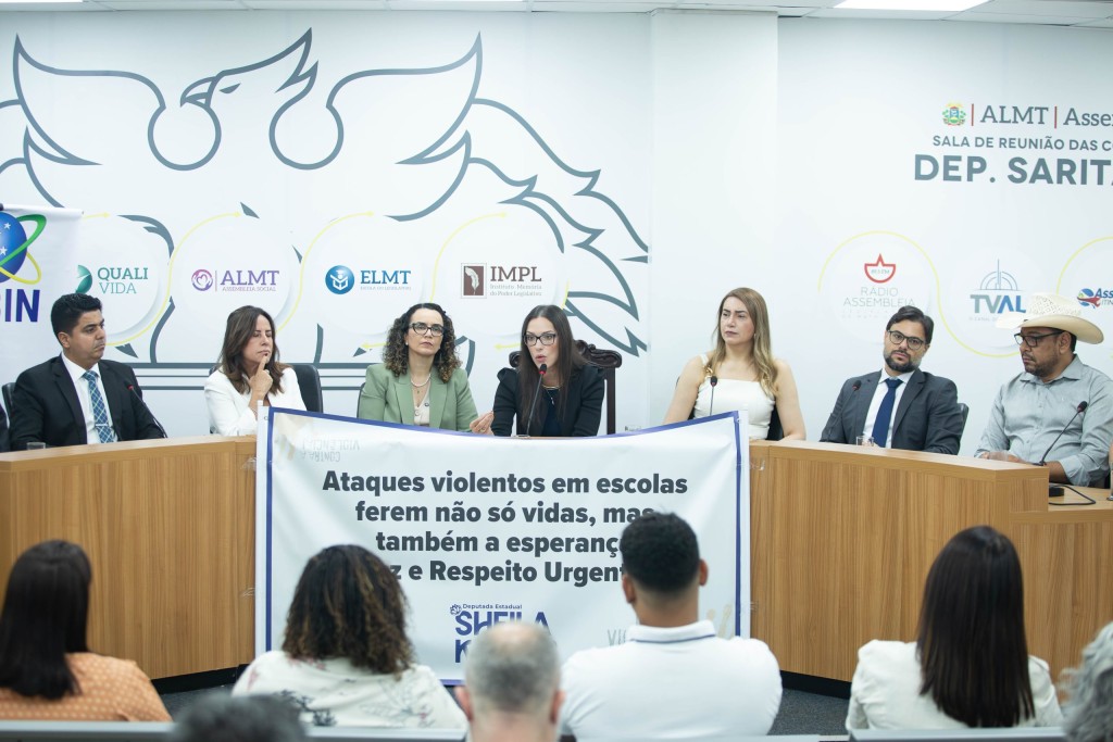 Assembleia Legislativa de Mato Grosso realizou, nesta quinta-feira (11), uma audiência pública proposta pela deputada Sheila Klener (PSDB) para discutir medidas de prevenção e combate à violência nas escolas do Estado. O debate servira à formatação de um projeto de lei instituindo o mês de abril para o combate à violência nas escolas.
