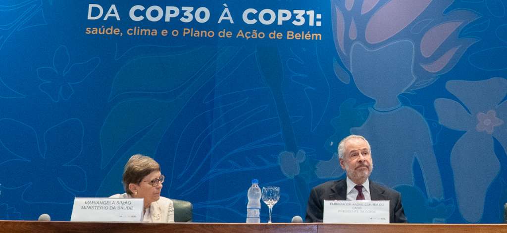Com o objetivo de dar continuidade aos avanços da COP30, o Ministério da Saúde e o Ministério das Relações Exteriores apresentaram o espaço de diálogo “Da COP30 à COP31: Saúde, Clima e o Plano de Ação de Belém”. A iniciativa prevê a apresentação dos resultados da agenda de saúde na conferência de Belém, a agenda de implementação do plano ao longo de 2026, a ampliação do engajamento internacional e o diálogo com missões diplomáticas sobre prioridades e estratégias para o fortalecimento da agenda rumo à COP31.