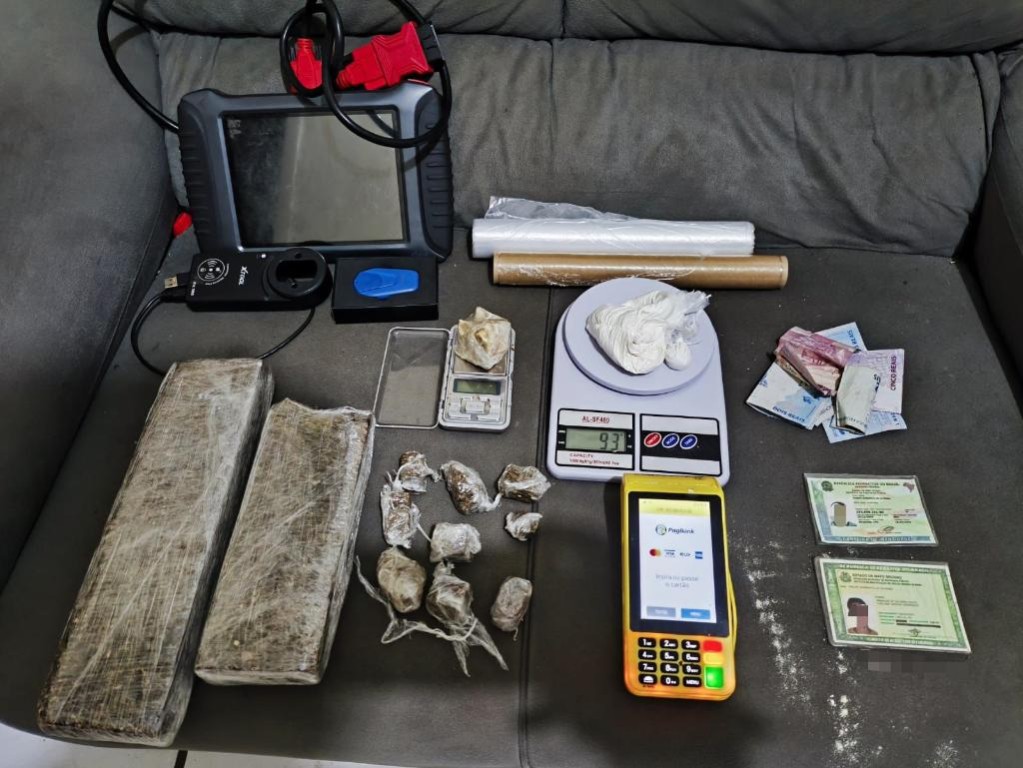 Diante da suspeita, os policiais seguiram a dupla e os abordaram já dentro de uma das casas. Os militares fizeram buscas ao objeto jogado pelos suspeitos e encontraram uma porção de maconha. Já dentro da casa, a equipe encontrou porções da mesma droga e outros objetos utilizados no tráfico e um equipamento para clonar chaves de veículos.