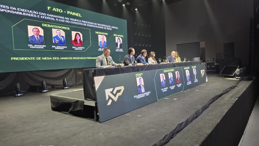 O primeiro painel abordou o tema “Limites da execução das garantias no tempo e processo de recuperação judicial – responsabilidades e efeitos, à luz do conceito de essencialidade de bens”. A mesa foi presidida pelo desembargador Marcos Regenold Fernandes, com participação de Joaquim Spadoni, Euclides Ribeiro e Andrea Grecco. A mediação ficou a cargo de Antonio Luiz Ferreira e a relatoria de Joice Wolf Scholl.