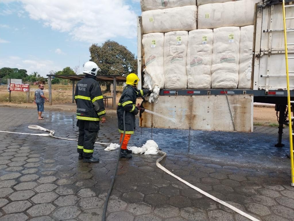 O Corpo de Bombeiros Militar de Mato Grosso (CBMMT) foi acionado na quinta-feira (4.9), para combater um incêndio em uma carga de pluma de algodão transportada por uma carreta na cidade de Alto Araguaia (a 418 km de Cuiabá).