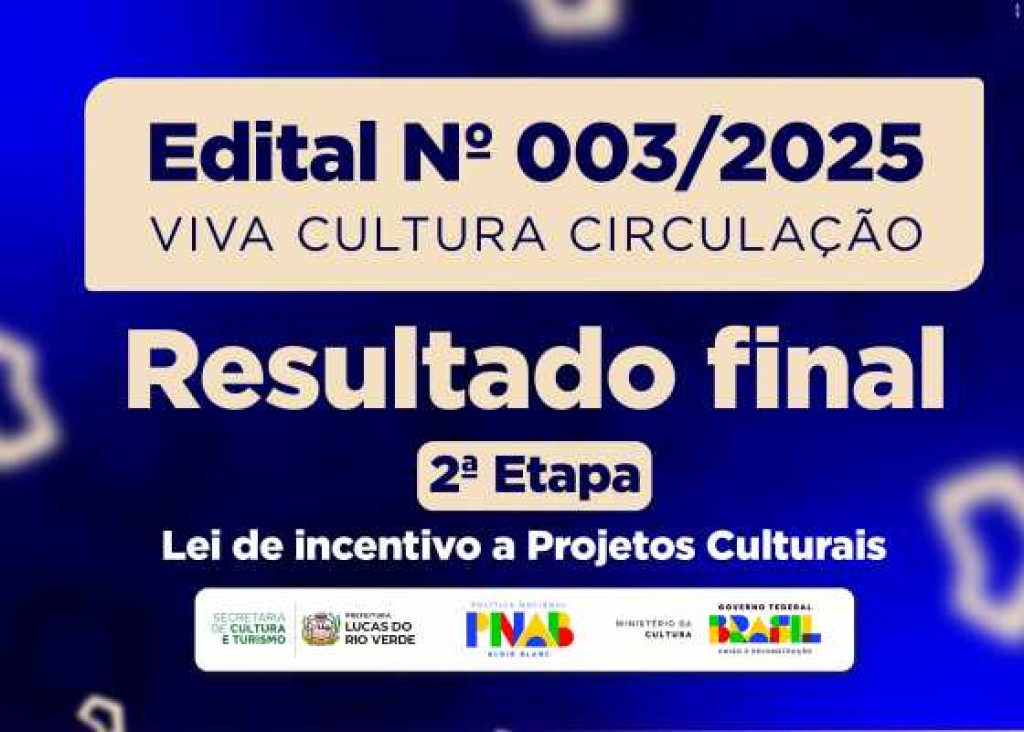 A Secretaria Municipal de Cultura de Lucas do Rio Verde informa que foi publicado nesta segunda-feira, 26 de maio de 2025, o resultado final da 2ª fase do Edital nº 003/2025, que trata da Análise de Mérito dos projetos culturais inscritos. Também foi divulgado o resultado dos recursos apresentados durante essa etapa.