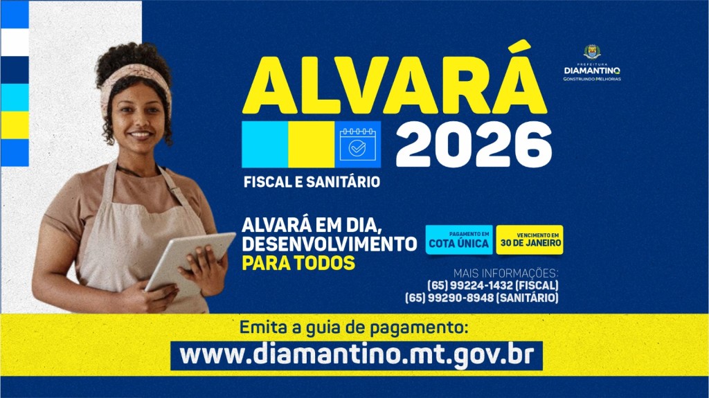 Emissão do Alvará do exercício de 2026 já está disponível no site da Prefeitura de Diamantino