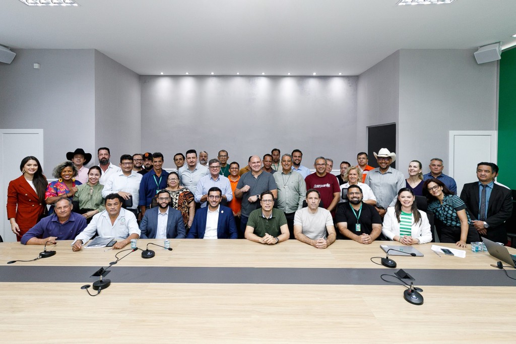 A imagem mostra o prefeito Abílio Brunini durante uma reunião com secretários, vereadores e representantes de entidades para discutir o cronograma e a estratégia de ação do mutirão de limpeza, que acontecerá no dia 8 de abril.