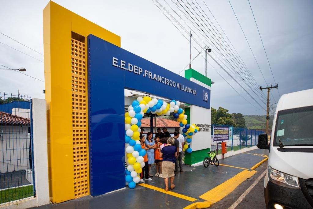 Na Escola Estadual Deputado Francisco Villanova, a revitalização foi completa: reforma do bloco escolar e da quadra, além da construção de muro e arquibancada.