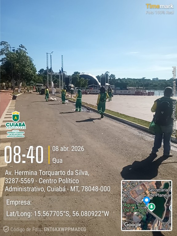 A Prefeitura de Cuiabá, por meio da Empresa Cuiabana de Zeladoria e Serviços Urbanos (Limpurb), realizou na manhã desta quarta-feira (8) uma mega operação de limpeza na Avenida Doutor Hélio Ribeiro, na região do Centro Político Administrativo. A ação ocorre após o primeiro dia das festividades em comemoração aos 307 anos da capital mato-grossense, realizado na noite de terça-feira (7).