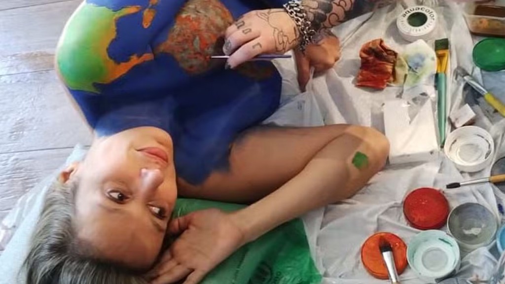 A apresentadora e ativista decidiu se manifestar após saber que apenas 40% dos alimentos servidos no evento são vegetarianos ou veganos. Seminua e com o corpo pintado representando o planeta em chamas, Luisa explicou: “É o planeta com as áreas queimando”.