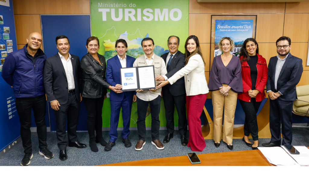 O evento em Brasília (DF) teve a presença do ministro do Turismo, Celso Sabino; de representantes da Confederação Nacional dos Municípios (CMN); do Sebrae; do Fornatur (Fórum Nacional de Secretários de Dirigentes Estaduais de Turismo) e da Secretaria de Turismo do Distrito Federal, parceiros fundamentais na disseminação do conteúdo. Interessados em participar do edital podem apresentar propostas até 23 de junho deste ano. (Confira AQUI o edital – https://fornecedor.brasilia.unesco.org/processes/4274#!)