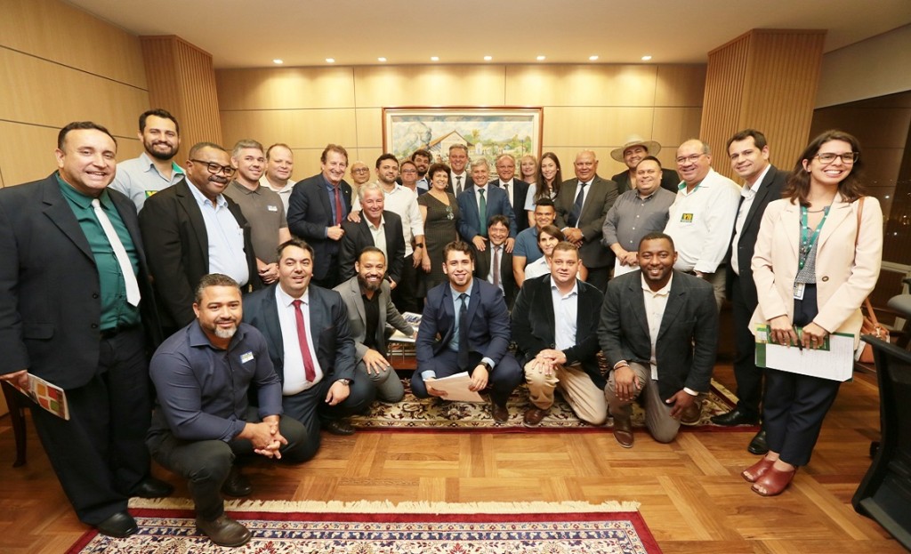 O ministro da Agricultura e Pecuária (Mapa), Carlos Fávaro, e o ministro do Desenvolvimento Agrário e Agricultura Familiar (MDA), Paulo Teixeira, receberam nesta terça-feira (30) representantes de produtores de banana de várias regiões do Brasil. Acompanharam os produtores o senador Jaime Bagatolli, os deputados Enio Tatto, do (PT-SP), Jorge Gotten (Rep-SC), Sandra Kennedy, secretária nacional de Articulação Institucional do Ministério das Mulheres, vereadores e prefeitos de diversas cidades.