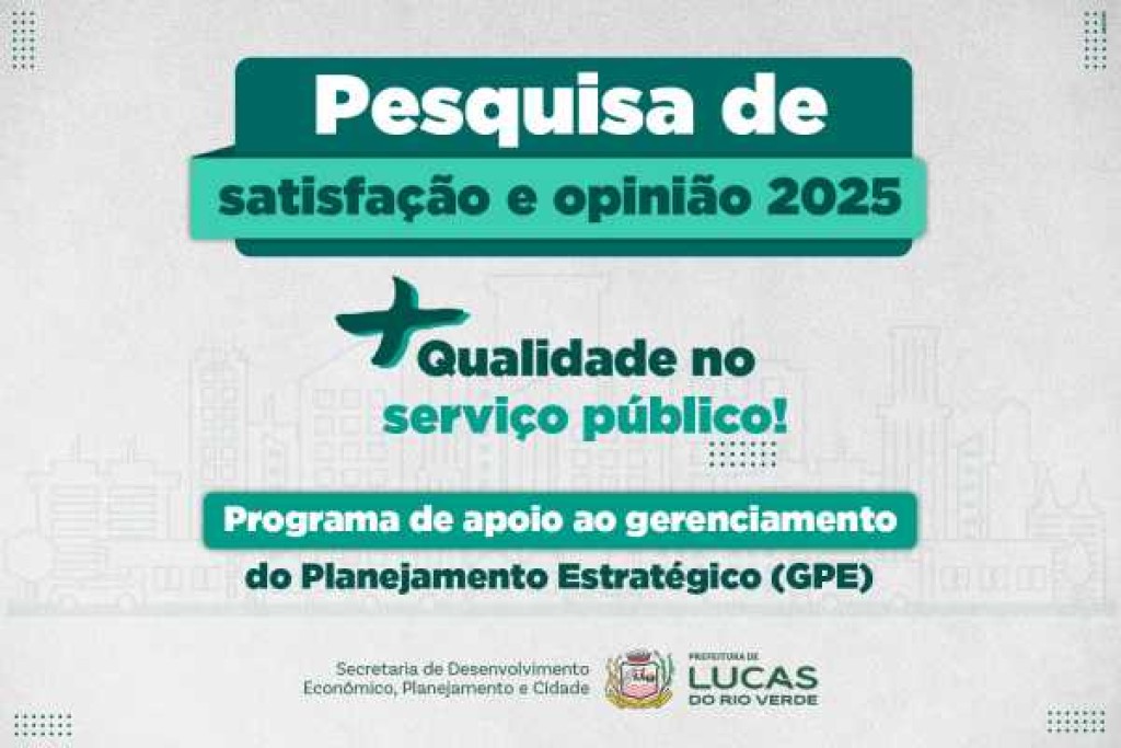 Ajude a construir a Lucas que você quer. Com o encerramento de mais um ano, a Prefeitura de Lucas do Rio Verde informa que, a partir desta terça-feira (23), está disponível para a população luverdense a pesquisa de opinião sobre os serviços públicos ofertados pela administração municipal.