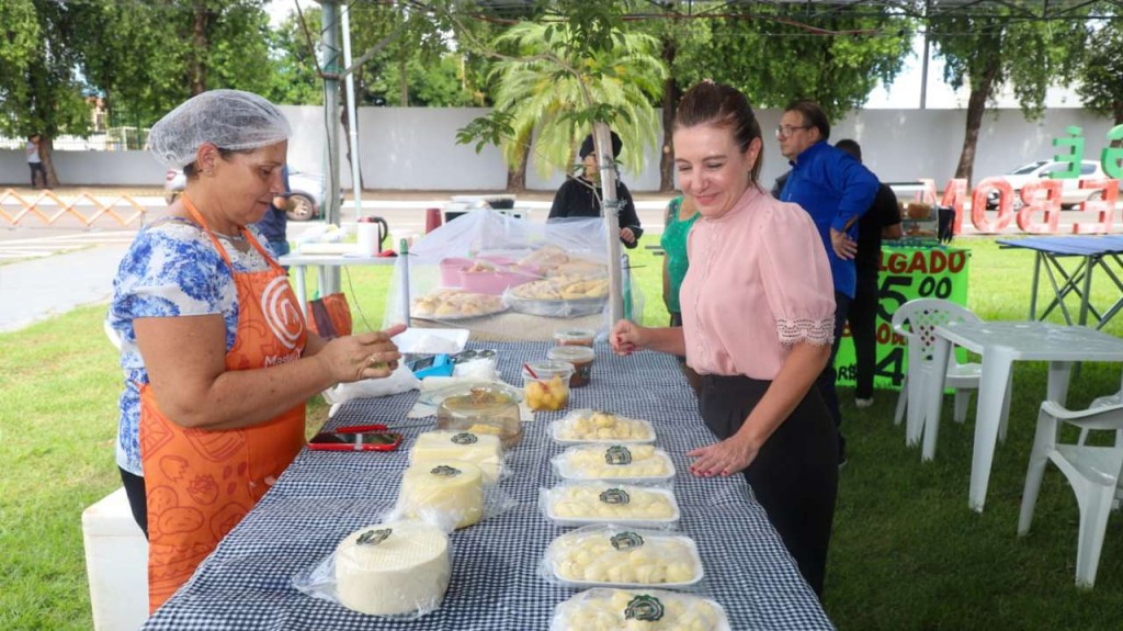 Presença feminina na feira da família – A produção de Ana Lúcia também chega diretamente aos consumidores por meio da Feira da Família, realizada pela prefeitura de Várzea Grande. A produtora participa do evento há mais de um ano, vendendo seus queijos e derivados.