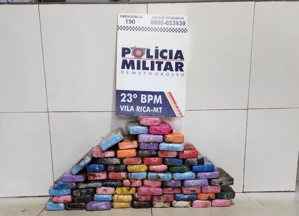 O carro foi encaminhado até a sede da PM do município, onde, em buscas minuciosas, foram localizados 67 tabletes de substância análoga a cocaína, totalizando 72 quilos de drogas.