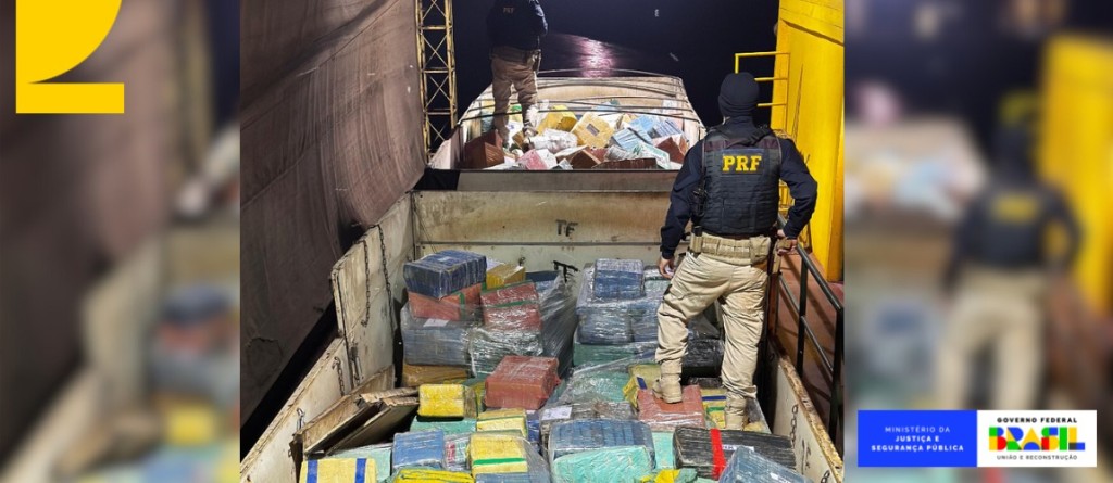 A equipe fiscalizava uma carreta que transportava milho e, ao verificar o compartimento da carga, localizou os fardos de droga em meio ao alimento.