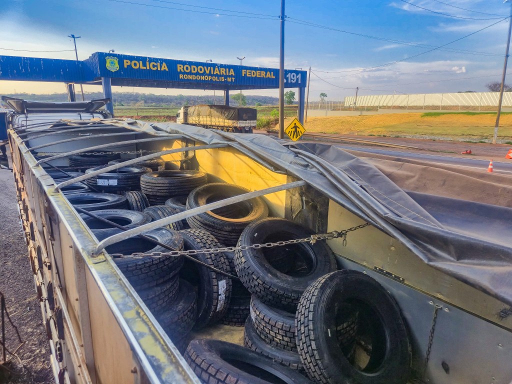 PRF apreende carga de pneus estrangeiros sem nota fiscal em Rondonópolis (MT)