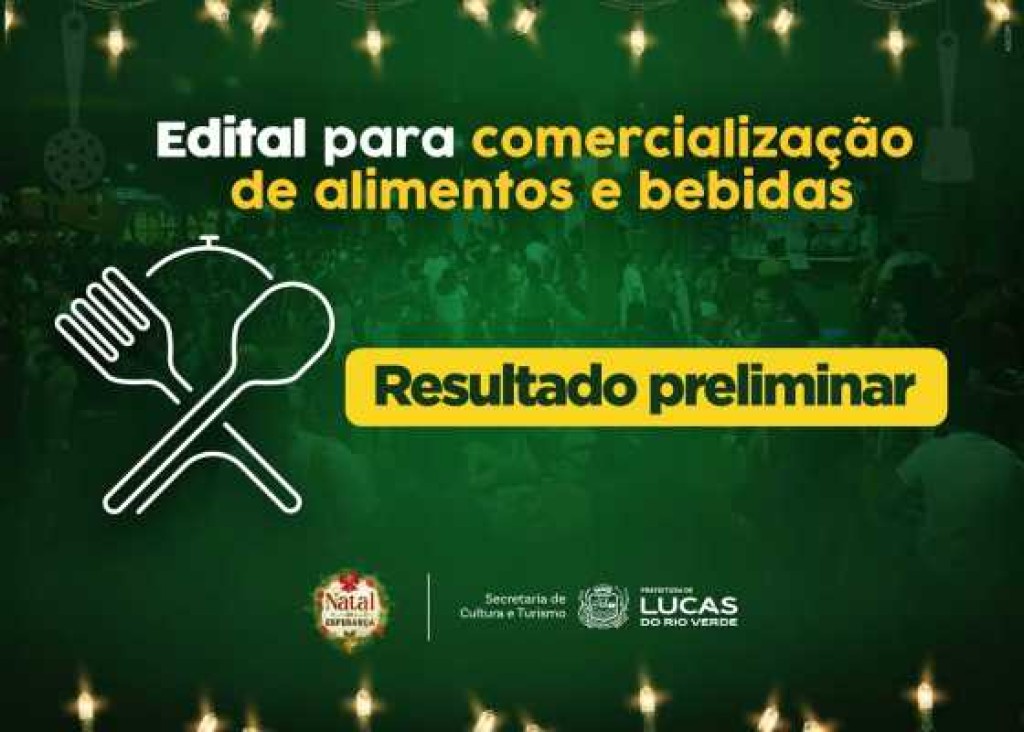 A Prefeitura de Lucas do Rio Verde, por meio da Secretaria Municipal de Cultura e Turismo, divulgou o resultado preliminar das inscrições referentes ao Edital nº 007/2025 da Praça de Alimentação. O edital tem como objetivo a seleção de pessoas jurídicas interessadas na autorização de uso de espaço público para comercialização de alimentos e bebidas durante o evento natalino, que será realizado no município.
