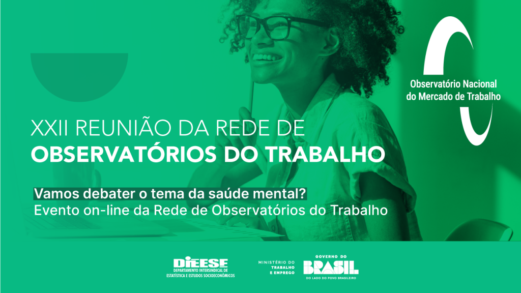 A saúde mental no mundo do trabalho foi o tema central do encontro online da Rede de Observatórios do Trabalho, realizado na quinta-feira (2). Promovido pelo Ministério do Trabalho e Emprego (MTE) em parceria com o Departamento Intersindical de Estatística e Estudos Socioeconômicos (Dieese), o evento trouxe a provocação “Vamos falar sobre saúde mental?” para abrir o debate com especialistas sobre bem-estar e produtividade.