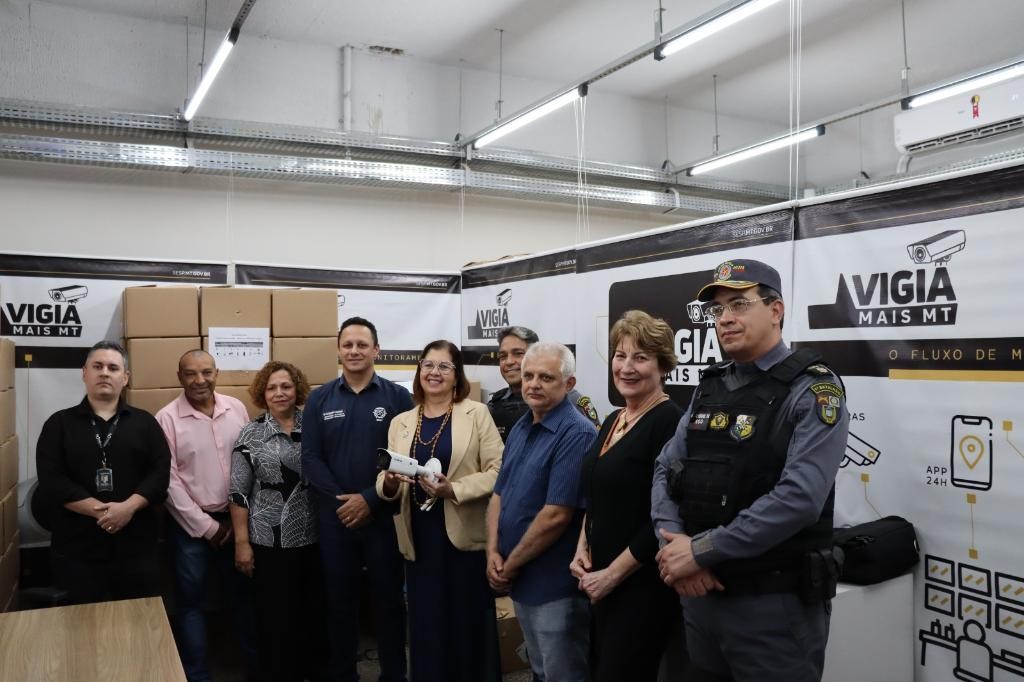A Secretaria de Estado de Segurança Pública (Sesp) realizou, na tarde desta sexta-feira (8.8), a entrega de 66 câmeras fixas do programa Vigia Mais MT à reitora da Universidade Federal de Mato Grosso (UFMT), professora Marluce Souza e Silva.