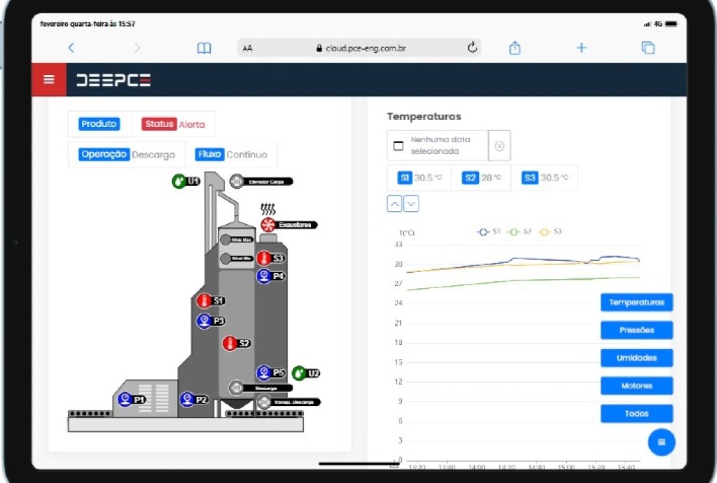 O diferencial da solução está no uso de um algoritmo proprietário, o DeepPCE, que monitora continuamente parâmetros críticos como umidade, temperatura e pressão. Em caso de anomalias que possam indicar risco de incêndio, o sistema dispara alertas imediatos e informa ao operador o local exato do problema.