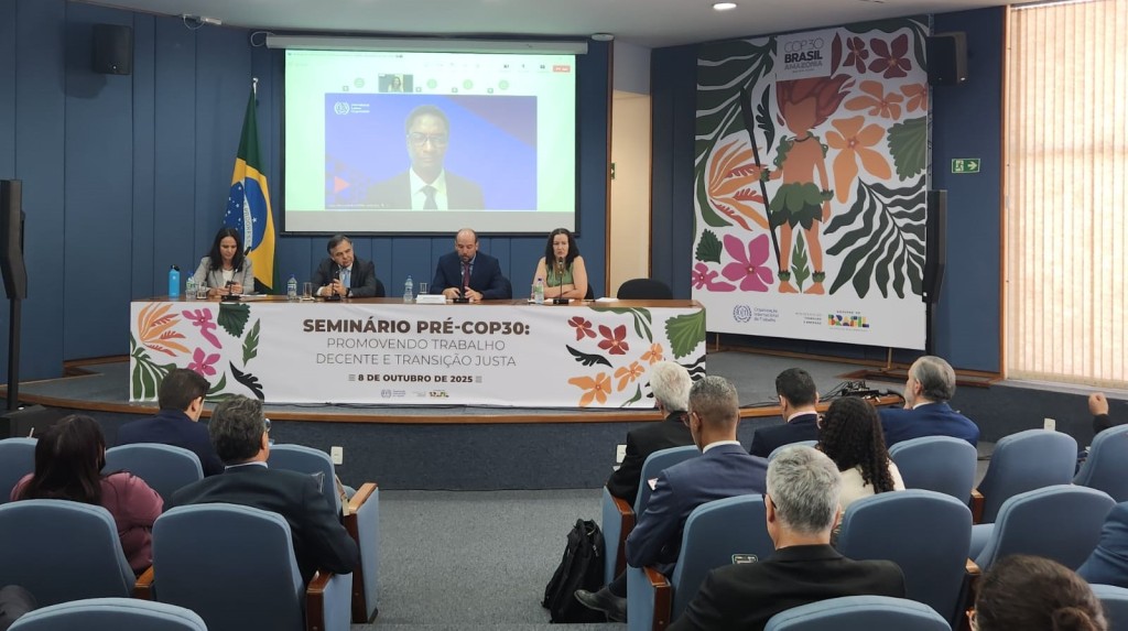 O papel das pessoas como centro da ação climática marcou o debate do painel “Transição Justa para o Desenvolvimento Sustentável e as NDC”, realizado nesta quarta-feira (8), durante o Seminário Pré-COP30: Promovendo Trabalho Decente e Transição Justa, em Brasília. Moderado pelo diretor da Organização Internacional do Trabalho (OIT) no Brasil, Vinícius Pinheiro, o painel reuniu representantes do governo, do setor produtivo e de trabalhadores para discutir os desafios e as oportunidades de uma transição para uma economia de baixo carbono que seja justa, inclusiva e geradora de empregos decentes.