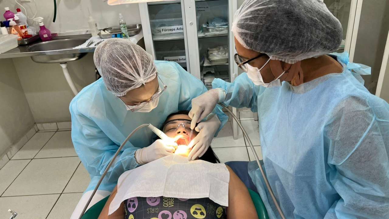 Os atendimentos não se restringiram à vacinação. Na Unidade de Saúde da Cohab Cristo Rei, a moradora Oscarlina Conceição aproveitou as primeiras horas do sábado para cuidar de si. Ela fez a limpeza dos dentes, serviço que estava disponível especialmente para a comunidade.
