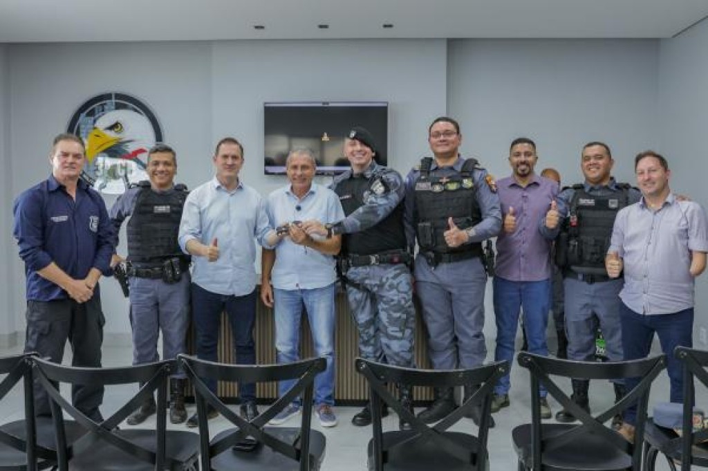 Sorriso deu mais um passo no fortalecimento da segurança pública nesta manhã, com a entrega de uma nova viatura para a 1ª Companhia PM de Força Tática. O evento contou com a presença do presidente da Câmara, Rodrigo Matterazzi, e do vereador Toco Baggio, além de representantes do poder público, como o prefeito Alei Fernandes e o secretário de Segurança Pública do Estado, Coronel PM César Augusto de Camargo Roveri. Também estiveram presentes membros do Ministério Público, OAB e demais órgãos de segurança.