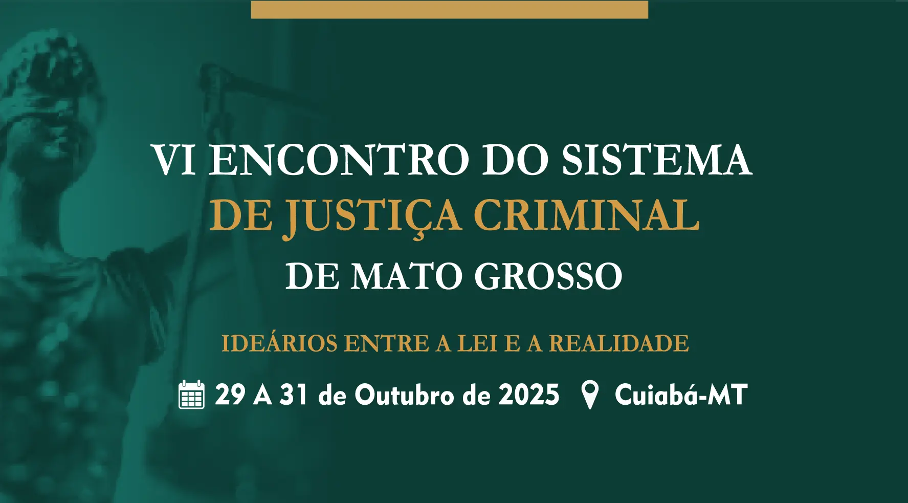 Em razão da grande demanda de interessados em participar do “VI Encontro do Sistema de Justiça Criminal do Estado de Mato Grosso – Ideários entre a Lei e a Realidade”, que será realizado de 29 a 31 de outubro, foi disponibilizada a opção de participação on-line.
